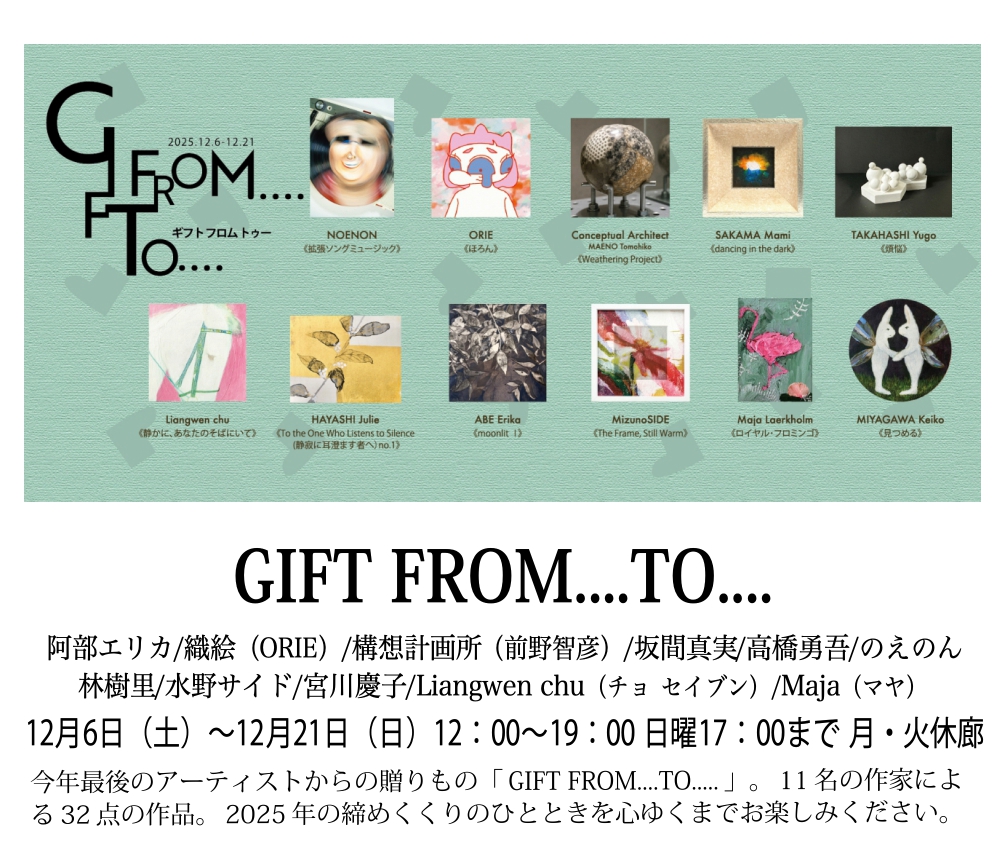 12:00〜20:00 日曜日18:00まで 最終日は17:00まで 月曜日休廊